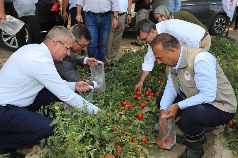 Konuşmaların ardından tarlada domates hasat etkinliği gerçekleştirildi.