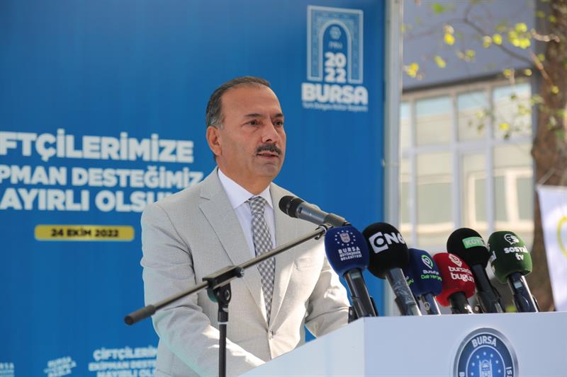 Bursa’nın bereketli topraklara sahip olduğunu belirten Büyükşehir Belediye Başkanı Alinur Aktaş “Övünmek yetmez, hakkını vermek lazım. Bunun için de bilgi, birikim ve tecrübenin yanında, makine ve ekipman gibi donanımlarla üreticimizin desteklenmesi gerekiyor. Bursa Büyükşehir Belediyesi olarak Tarım Peyzaj A.Ş. marifetiyle, Kırsal Hizmetler Daire Başkanlığı, BUSKİ Genel Müdürümüz ve HAGEL ile birlikte bunları yapmaya çalışıyoruz. Ürün toplama merkezlerinden ekipman desteklerine, fide-fidan dağıtımlarından arıcılık ve ipekböcekçiliğinin gelişmesine kadar her alanda destekler verdik. Bursa'nın tarımsal teknolojik altyapısının yükseltilmesi için çaba gösteriyoruz” dedi.