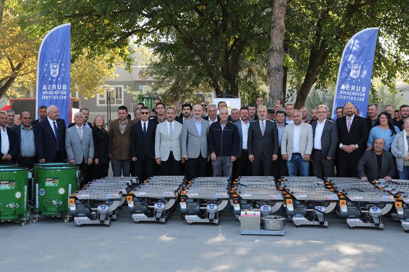 Bursa Büyükşehir Belediyesi’nin kırsal kalkınma hedefleri doğrultusunda Bursa İli Hayvancılığı Geliştirme Birliği (HAGEL) destekleriyle temin edilen tarım makineleri törenle çiftçilere dağıtıldı.