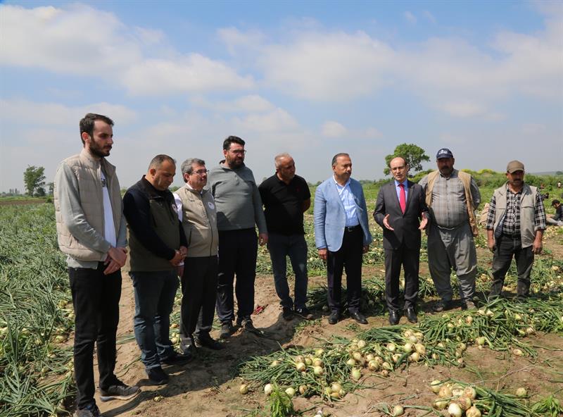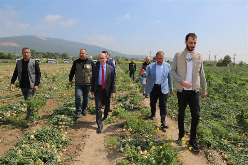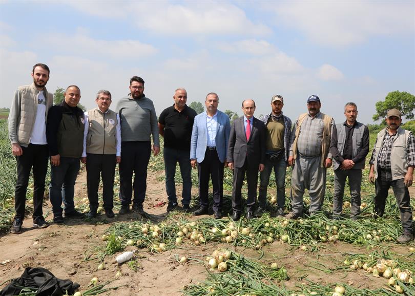Bugün de hem ilçemiz hem de ilimiz için oldukça önemli bir ürün olan soğan hasadını Karacabey ilçemizde gerçekleştirmekteyiz. Hasadın bereketli olması dileğiyle öbncelik üreticilerimiz olmak üzere ilimize ve ülkemize hayırlı olmasını diliyorum." dedi.