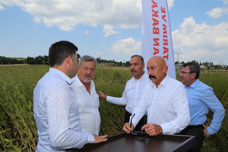 İl Müdürü AYGÜL konuşmasını şöyle sürdürdü: ''Tarımsal açıdan her yenilik ve gelişime açık olan Harmancık İlçemizde geçtiğimiz yıl 4 mahallemizde 6 üreticimizin katkısı ile toplam 22 dekarlık alanda ilk defa ekim denemesi yapılmıştır. Hasat edilen 2 bin 485 kg tohum, alıcı firmaya teslim edilmeyip tekrar tohumluk olarak dağıtımı üreticilerimize yapılmıştır.