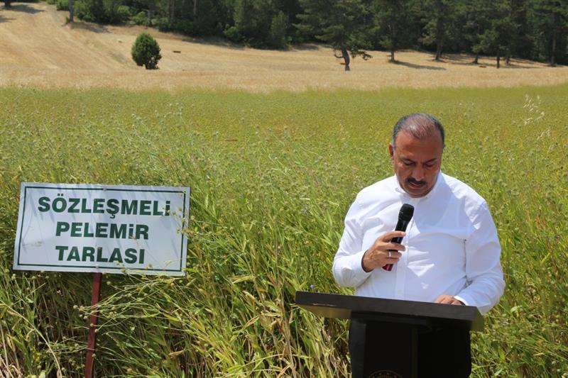 Harmancık İlçesinde Koordinasyon ve Tarımsal Veriler Şube Müdürlüğü personellerinden Ziraat Yüksek Mühendisi Metin DAVUT koordinatörlüğünde ekimi yapılan pelemir bitkisinin tarla günü çiftçimiz Ahmet CAN'ın arazisinde düzenlenen programla yapıldı. Tarla gününe katılan Bursa İl Tarım ve Orman Müdürü Hamit AYGÜL Pelemir bitkisinin zor koşullara dayanıklı ve oldukça verimli yağ bitkisi olduğunu vurguladı. İl Müdürü Hamit AYGÜL, ''Pelemir, soğuğa aynı zamanda kurağa dayanıklı olduğundan gelecek için potansiyel bir alternatif yağ bitkisi olarak önerilmektedir. Kıraç, eğimli, ve tarıma uygun olup kullanılmayan atıl arazilerde uzun yıllar sonra tarımsal işleme yapılması durumunda, nadas alanlarına uygun, kuraklığa ve soğuğa karşı dayanıklı bir bitkidir. Ülkemizde kullanılmayan tarım arazilerinin tarıma kazandırılmasında ve domuz zararı görülmemesiyle de tercih edilebilecek bir bitkidir.'' dedi.