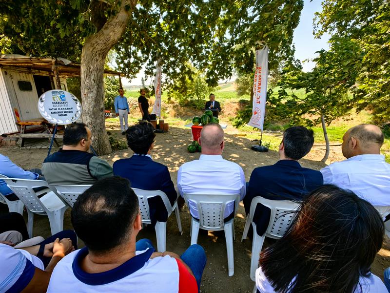 Bereketli topraklarında gerçekleşen 82 bin ton karpuz üretimi ile ilimizin önemli karpuz üretim merkezlerinden olan Karacabey ilçesinde düzenlenen ilk karpuz hasadı programına Karacabey Kaymakamı Hakan Kafkas, Karacabey Belediye Başkanı Fatih Karabatı, Karacabey Cumhuriyet Başsavcısı Sadullah Gümüş, Bursa İl Tarım ve Orman İl Müdür Yardımcısı Erdoğan Ceylan ve üreticiler katıldı.