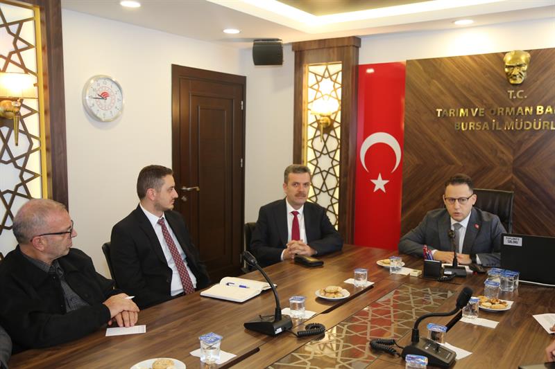 Bursa İl Tarım ve Orman Müdürlüğü Toplantı Salonunda yerinde değerlendirmesi yapılmak üzere düzenlenen toplantıya, Bursa İl Tarım ve Orman Müdürü İbrahim Acar ile kent bazında ilgili kurum ve kuruluş yetkililerinin fiziksel olarak, ilgili diğer kurum ve akademisyenler ise online olarak katıldı.
