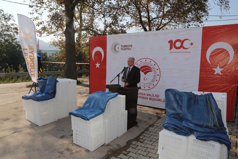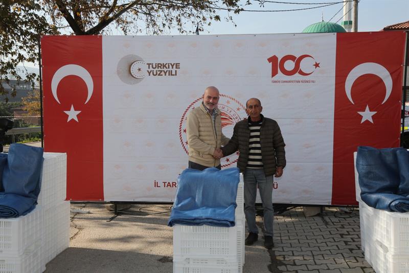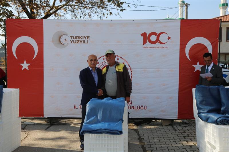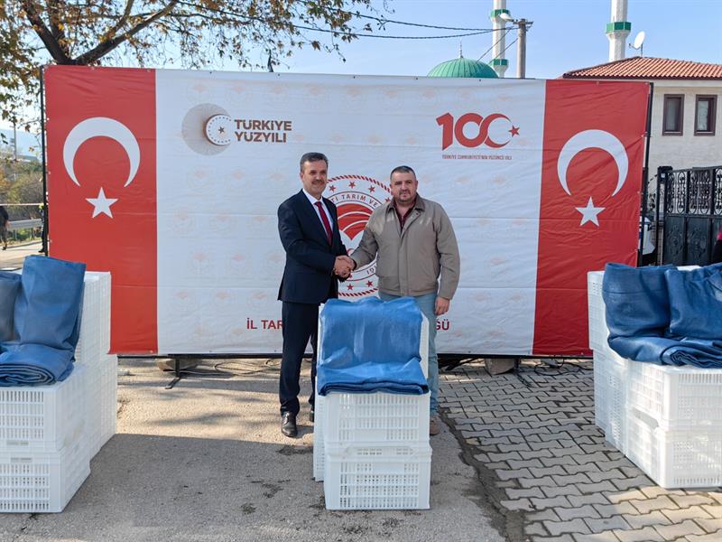 Bursa Vali Yardımcısı Hulusi Doğan' ın katılımıyla bugün düzenlenen program ile üreticilere zeytin selesi ve yaygıları da teslim edildi.