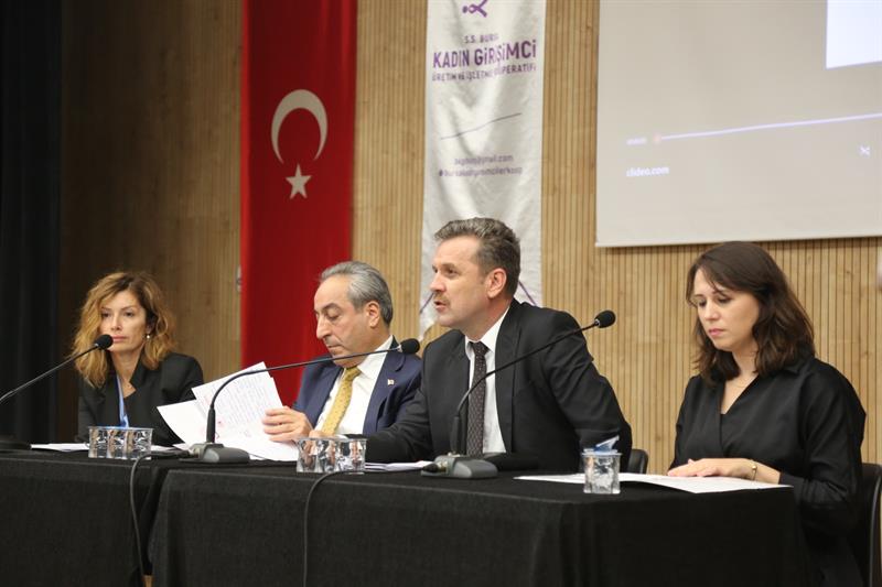 İl Müdürü İbrahim Acar ile birlikte Bursa İl Ticaret Müdürü İsmail Aslanlar ve Prof. Dr. Nejla Adanur' un konuşmacı olarak yer aldığı “Cumhuriyetin 102. Yılında Kadın Kooperatifçiliği" panelinin de bulunduğu programda geçmişten günümüze kooperatifçilikte kadın emeğinin gücü, önemi ve kooperatifçiliğin Bursa'daki gelişimi ele alındı.