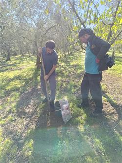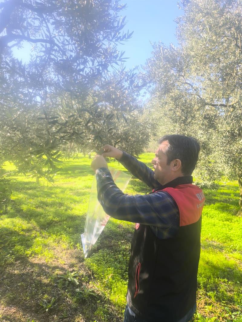Zeytin entegre mücadele kapsamında teknik personelimiz tarafından Orhangazili üreticimize ait bahçeden yaprak ve toprak örnekleri alınarak, yaprak ve toprak örneği alınma yöntemi ile örnek alınırken dikkat edilecek hususlarla ilgili üreticimize bilgi verildi.