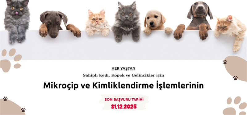 Kedi, Köpek ve Gelinciklerin Kimliklendirilmesi ve Kayıt Altına Alınmasına Dair Yönetmelik kapsamında her yaştan kedi köpek ve gelinciklerin kimliklendirilme işlemleri 31.12.2025 tarihine kadar İlçe Tarım ve Orman Müdürlüklerinin yanı sıra Veteriner Hekimler Odası ile yapılan protokol ile veteriner muayenehane, poliklinik ve hayvan hastanelerinde çip takılmak suretiyle yapılmaktadır.