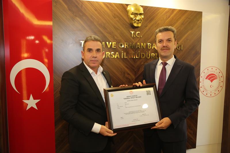 İlimizde birinci derece örgüt kapsamında yer alan Bursa İl Damızlık Sığır Yetiştiricileri Birliği, SS Çeltikçi Beldesi ve Çevre Köyleri Tarımsal Kalkınama Kooperatifi, SS Ağa Köyü Tarımsal Kalkınama Kooperatifi, SS Hamidiye Köyü Tarımsal Kalkınama Kooperatifi, SS Karacabey ve Köyleri Damızlık Sığır Yetiştiriciliği Tkk, Bursa İli Karacabey İlçesi Süt Üreticileri Birliği ve Bursa İli Yenişehir İlçesi Süt Üreticileri Birliği’ ne sertifikaları Bursa İl Tarım ve Orman Müdürü İbrahim Acar tarafından teslim edildi.