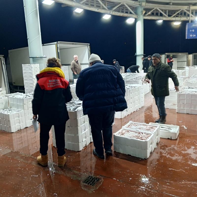 Bursa balık halinde İl Müdürlüğümüz ve Tarım A.Ş ile birlikte yapılan gece denetiminde 15 nakil aracı ve mezat alanı kontrol edildi. Sahipsiz 150 kg tekir balığına avlanabilir asgari boy altında olduğu için el konuldu.