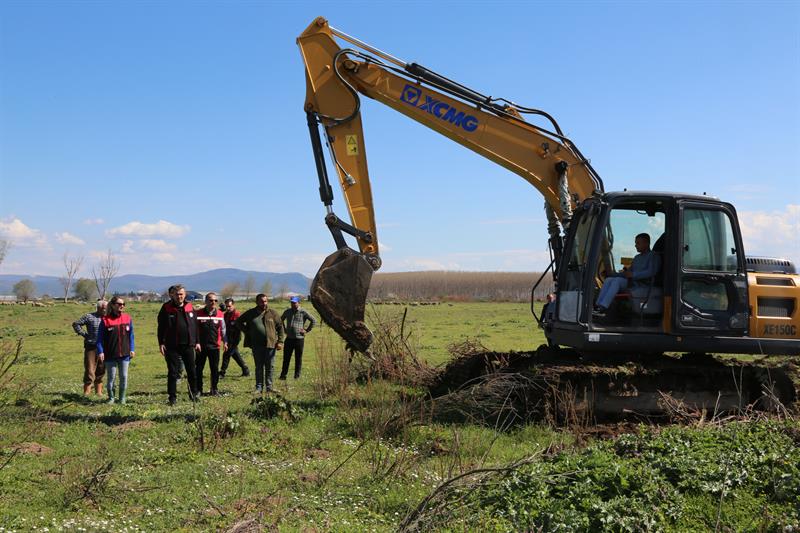 Mustafakemalpaşa ilçesi Ovaazatlı Mahallesinde mera ıslah ve amenajman projesi kapsamında, 150 dekar alanda yapay mera tesisi öncesi çok yıllık yabancı ot ve çalı kontrolü için iki yıl ön bitki olarak arpa ekimi yapılacaktır. Arpa ekiminden önce mera alanında çok yıllık çalı formundaki bitkilerin kepçe ile kök sökümü, kök toplatması ve derin sürüm işlemleri yapıldı.