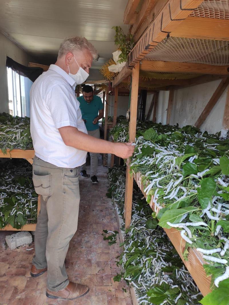 Bursa İl Tarım ve Orman Müdürlüğünde görevli teknik elemanlar tarafından ipekböceği üreticileri ziyaret ederek, yetiştiricilere ipekböcekçiliği konusunda yetiştirme teknik bilgileri ve hijyen koşullarını anlatılıyor. İpekböceğini canlandırmak için yürütülen çalışmalar kapsamında, Büyükorhan İlçesi Düğüncüler ve Örencik Mahallerinde Kozabirlik tarafından damızlık ipekböceği yumurtası inficar ettirilerek, damızlıkçı üreticiler tarafından beslenmesi sağlandı. Teknik ekip, damızlık ipekböcekçiliği yapan ailelere yaptıkları ziyaret esnasında, ipekböceği larvaları da kontrol ederek, bunlardan numuneler aldı. Larvalardan alınan numuneler Bursa İl Tarım ve Orman Müdürlüğü laboratuvarında gerekli testlere tabi tutuldu. Bununla birlikte, Mustafakemalpaşa İlçesi Gündoğdu, Kestelek, Paşalar, Çaltılıbük Mahalleleri ve Orhaneli İlçesi Nalınlar Mahallesinde ise polihibrit ipekböceği beslemesi devam ediyor.